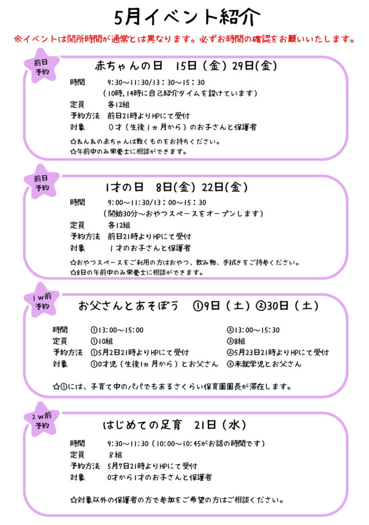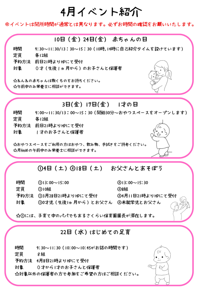 赤ちゃんの日専用予約フォーム(利用日前日より予約開始)